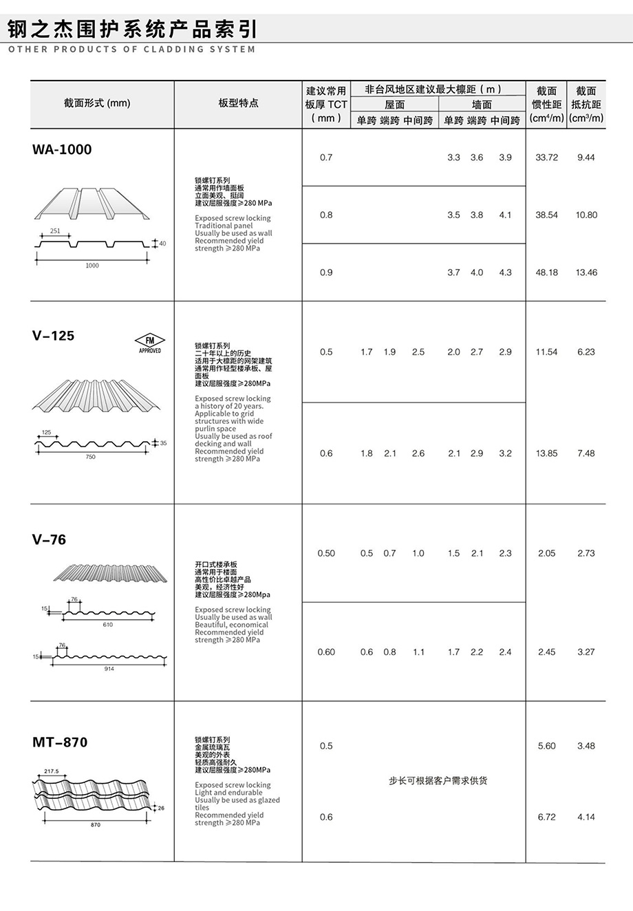 領先的預制金屬屋(墻)面和樓承板系統產品索引