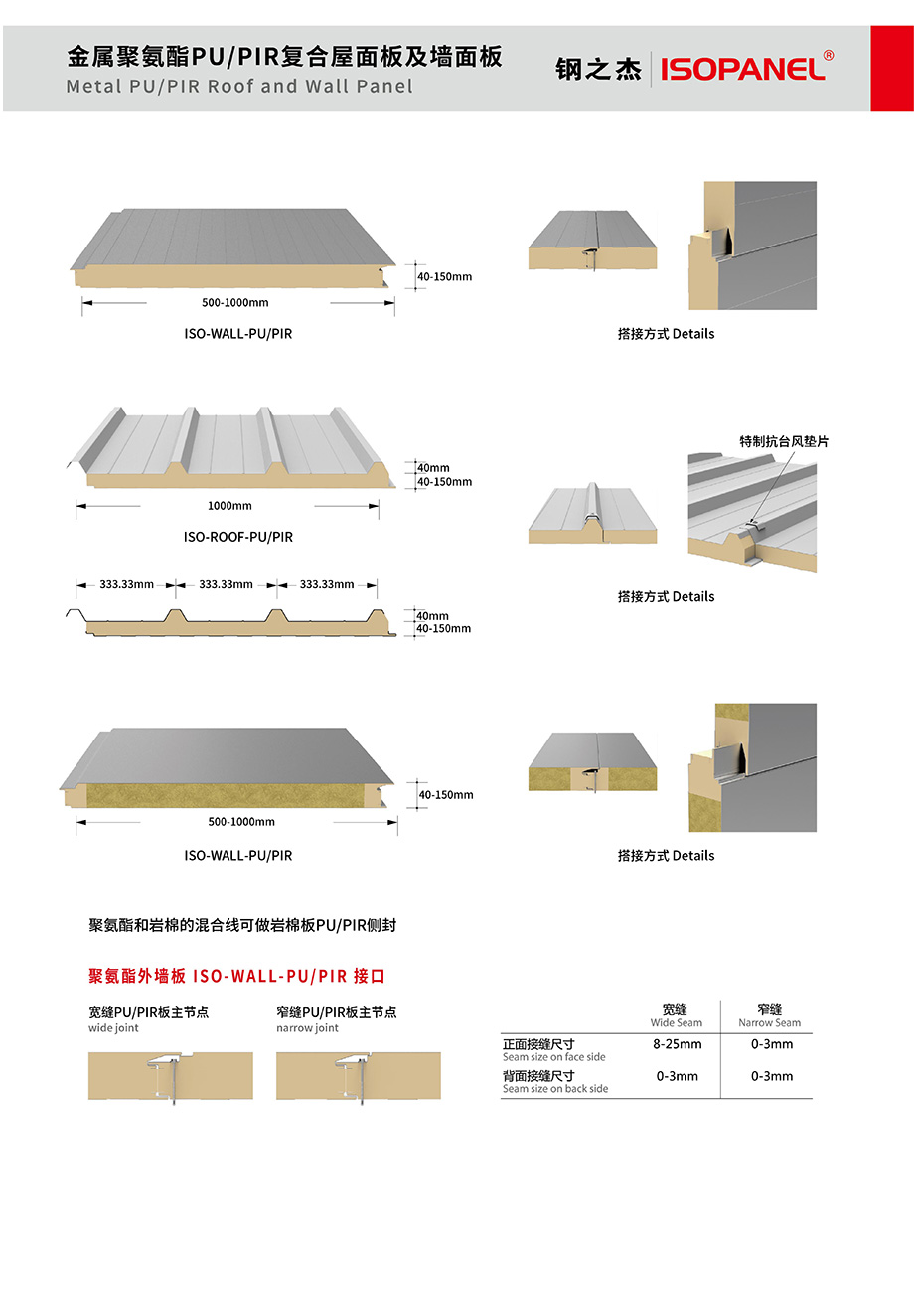 金屬聚氨酯PU/PIR復(fù)合屋面板、墻面板及波蘭板
